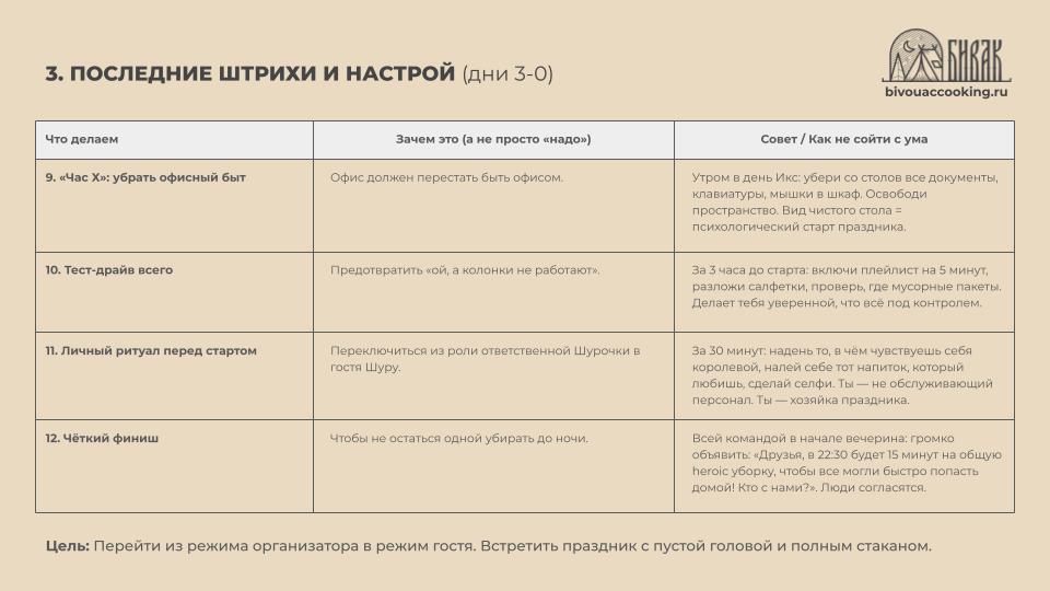 Я подготовила пару полезных табличек и чек-лист, чтобы организация корпоратива в офисе отняла минимум сил, а ты осталась бодрой для домашних хлопот!